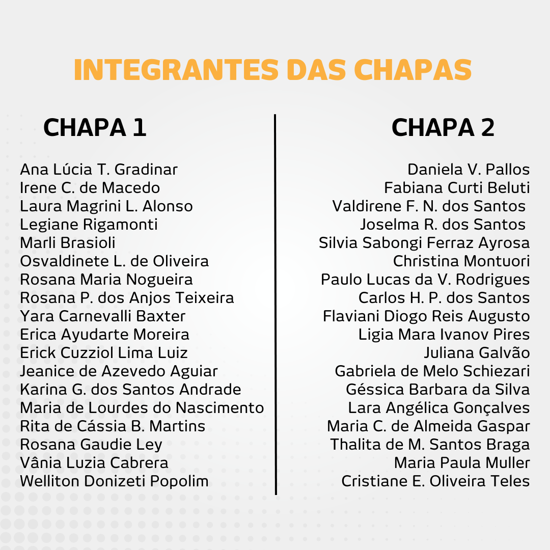 Abaixo estão relacionados documentos como o edital de convocação da Eleição 2023 para o triênio 2023/2026 e o edital com a publicação das chapas e seus respectivos integrantes que concorrem ao processo eleitoral.